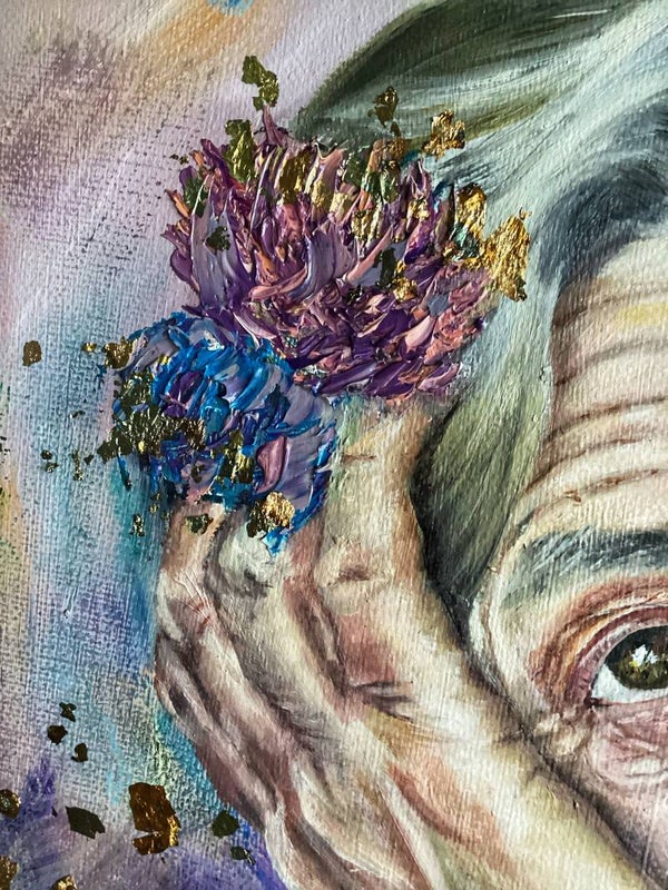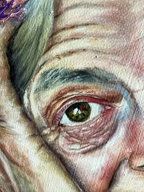 Day Dreaming*, oil on canvas (40x40 cm), is a captivating figurative painting that celebrates quiet introspection and imagination. This evocative portrait captures a serene moment of contemplation, proving that daydreaming transcends age. The woman’s gentle demeanor and thoughtful expression invite viewers to connect with the universal act of dreaming—a timeless sanctuary for creativity and reflection. Soft pastel colors and intricate floral details enhance the ethereal ambiance, bringing a sense of peace and wonder to this artwork. Perfect for admirers of figurative art, portrait paintings, and emotionally resonant pieces, *Day Dreaming* is a testament to the ageless beauty of imagination.